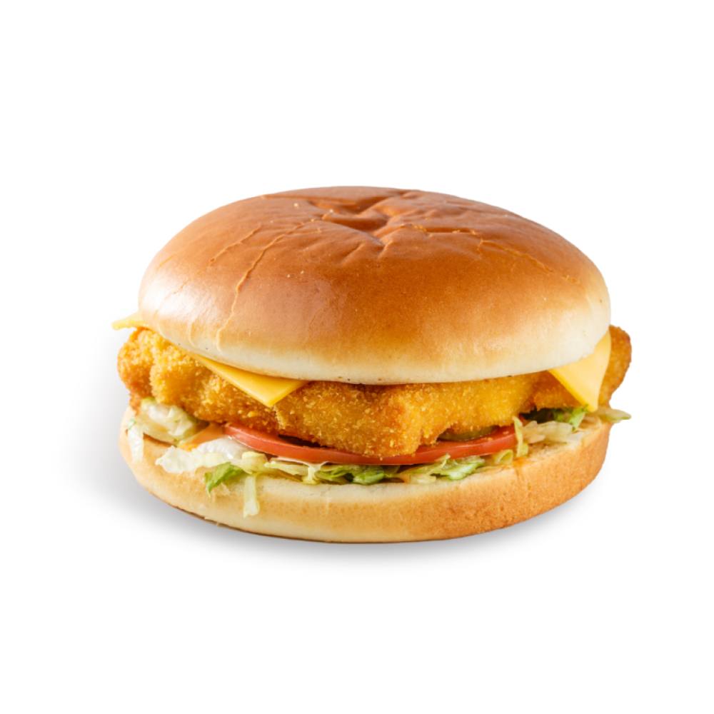Классический бургер с нежной куриной котлетой, сыром, свежими помидорами и салатом, маринованными огурцами, и фирменным соусом.