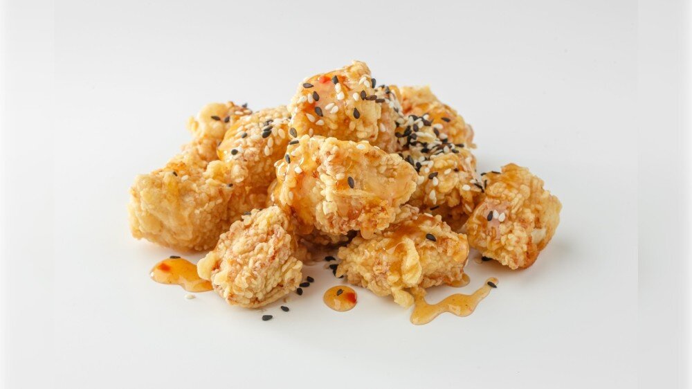 Хрустящие куриные байтсы с кисло-сладкой чили-глазурью, посыпанные кунжутом. Сочные внутри, с ярким жгучим вкусом и аппетитным хрустом.